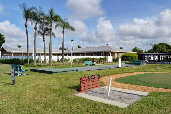 Most activities are located in and around the clubhouse. Take a dip in the refreshing swimming pool, or relax poolside. Dance the night away at the clubhouse. Practice your short game on the well manicured putting green. Enjoy a game of billiards or a tennis match. Work out in the well equipped fitness center or try your hand at bingo. Stroll or bike ride through our beautifully landscaped neighborhood. You are invited to visit us and see why so many call Park Royale home.