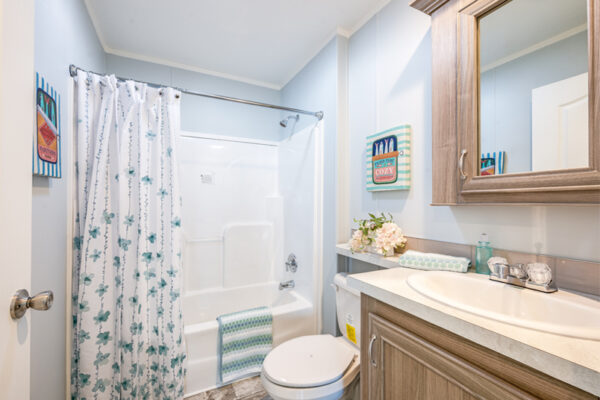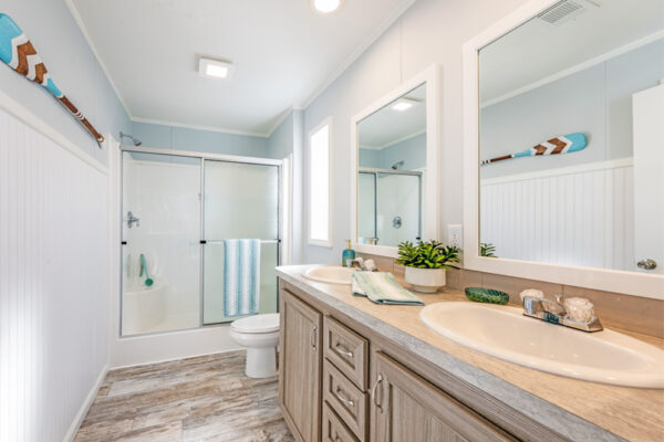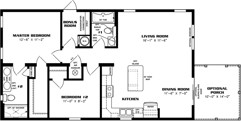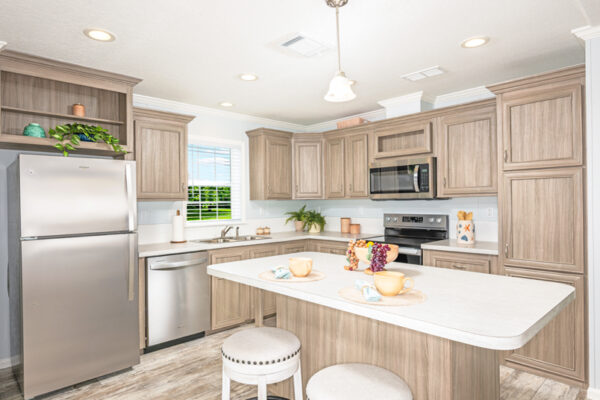 From counter tops and back splashes to cabinet finishes and fireplace options, the Imperial IMP-2421A-39900 double wide manufactured home is a fully customizable dream space. At just over 1,000 square feet, this cozy abode includes a master bedroom with an ensuite bath as well as a secondary bedroom and full guest bathroom. The bonus room is able to be utilized as a laundry area thanks to the washer and dryer hookups, and owners can choose to add an optional porch if they’re hoping to spend ample time enjoying the outdoors.
